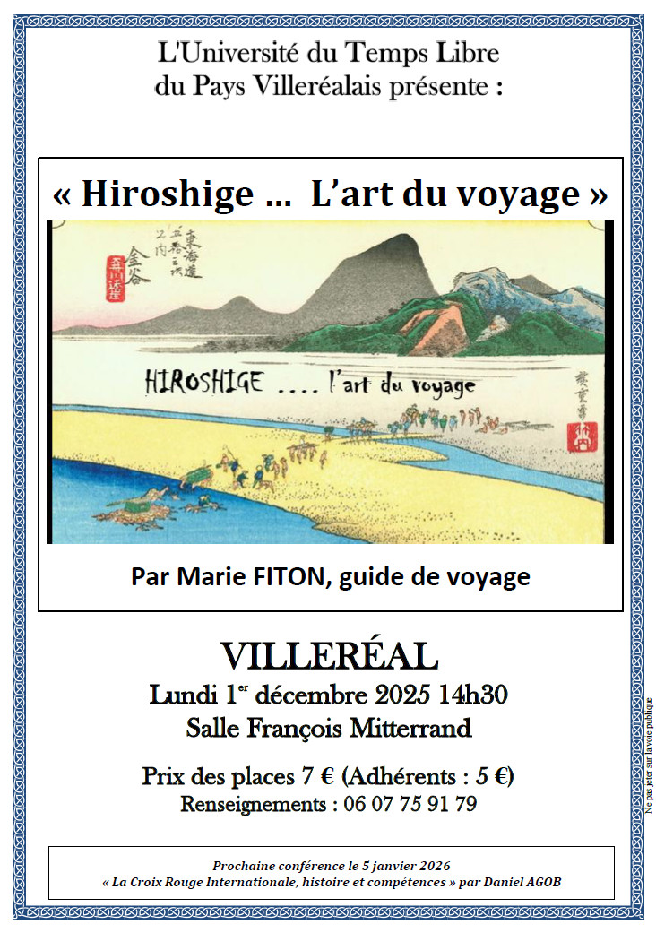 Lundi 2 décembre à 14h30 salle François-Mitterrand, "Hiroshige... l'art du voyage" :