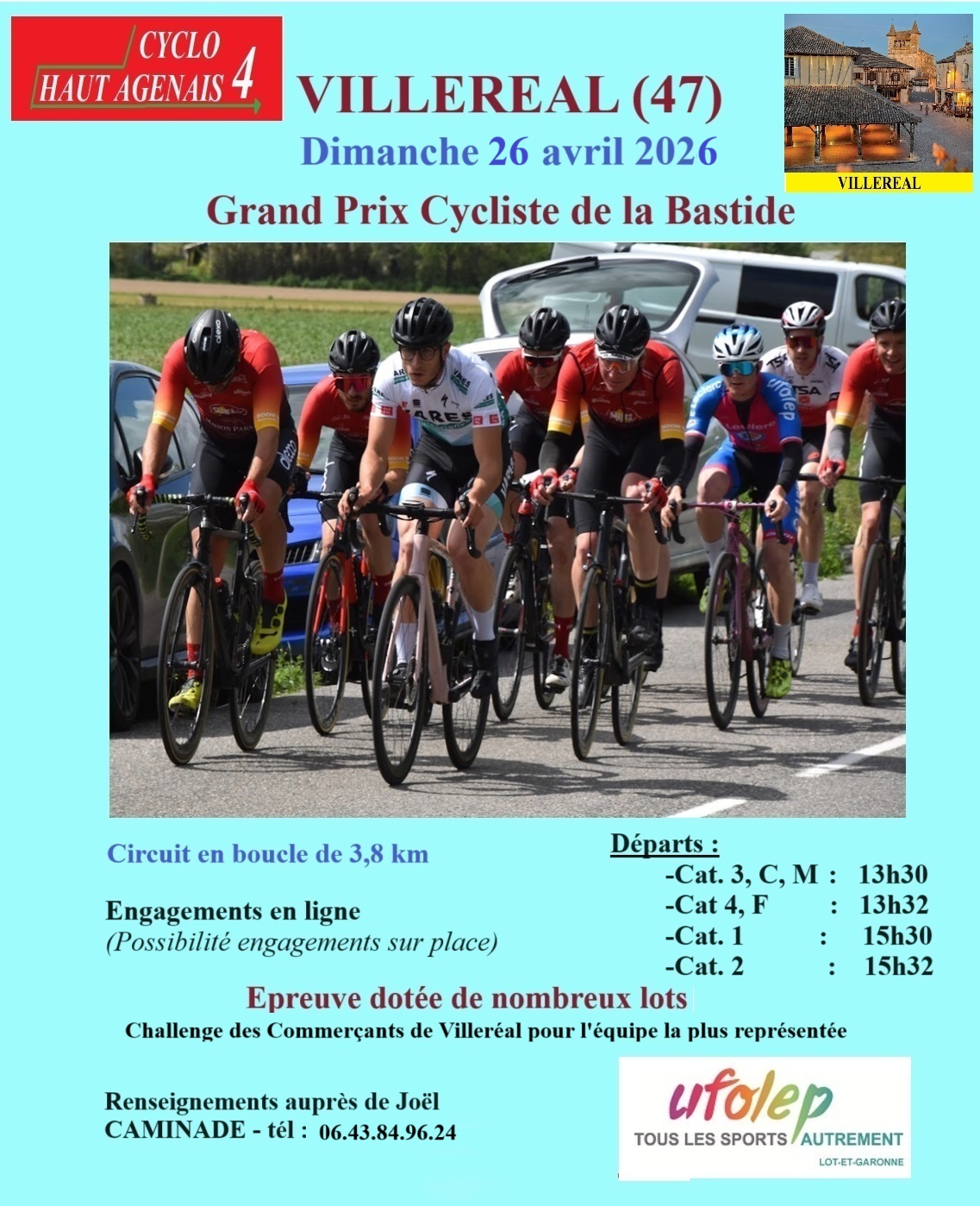 Dimanche 26 avril 2026, le club Cyclo 4 Haut-Agenais organise la 5e édition du Grand Prix cycliste de la bastide. Plus de 150 coureurs sont attendus sur le circuit habituel de Blancou-Banel, avec départs et arrivées face au parking d’Intermarché.